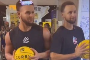 以假乱真!当库里看到自己的蜡像 也忍不住模仿起来