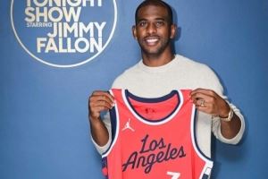 日前,保罗带着3号快船球衣亮相《吉米今夜秀》(The Tonight Show),并与主持人一同合影。