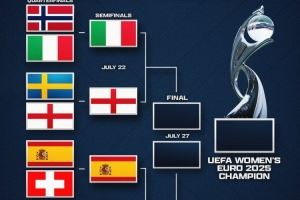 女足欧洲杯半决赛对阵:意大利vs英格兰 西班牙vs德国