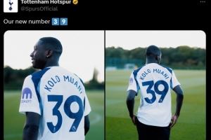 热刺官方宣布,这位法国前锋将在新赛季身披39号球衣。
