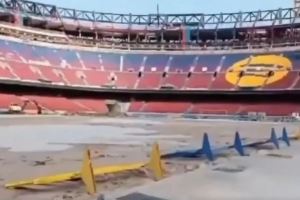 体育资讯07月22日讯 近日媒体晒出了诺坎普球场的环拍视频,展示了诺坎普球场的施工进展。