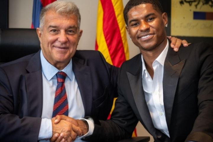 巴萨官推晒拉什福德与拉波尔塔握手图,配文:“欢迎来到世界上最好的俱乐部”。