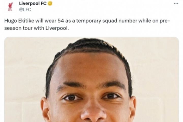 利物浦官方:埃基蒂克将在季前赛身穿54号,作为临时球衣号码