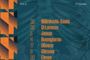 那不勒斯替补:14-孔蒂尼、25-费兰特、3-米格尔-古铁雷斯、7-内雷斯、8-麦克托米奈、13-拉赫马尼、19-霍伊伦、26-维尔加拉、30-马佐基、31-别克马、35-马里亚努奇、37-斯皮纳佐拉、69-安布罗西诺