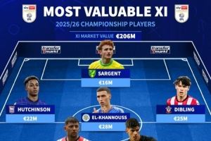 体育资讯8月8日讯 新赛季英冠今夜开打,德转列出了截至目前联赛最贵11人阵,迪布林、哈钦森、埃尔哈努斯、贝利斯在列,11人总身价2.06亿欧。